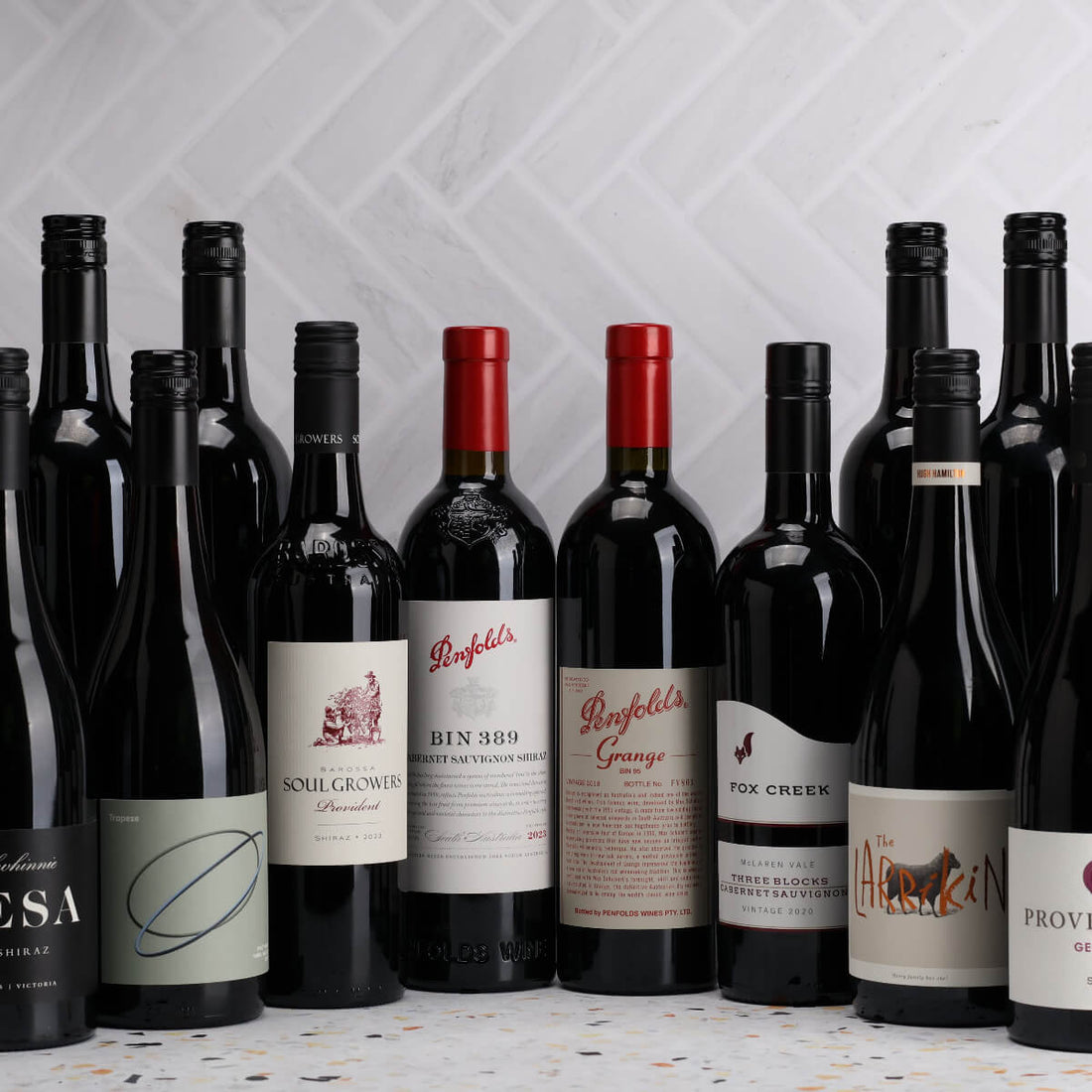 Your guaranteed six are Dalwhinnie Mesa Shiraz 2021, Soul Growers Provident Shiraz 2023, Provenance Geelong Shiraz 2023, Trapeze Yarra Valley Pinot Noir 2024, Fox Creek Three Blocks Cabernet 2020, and Hugh Hamilton The Larrikin Shiraz Cabernet 2021. It is a strong mix of proven producers, great regions, and styles you will actually want to drink.